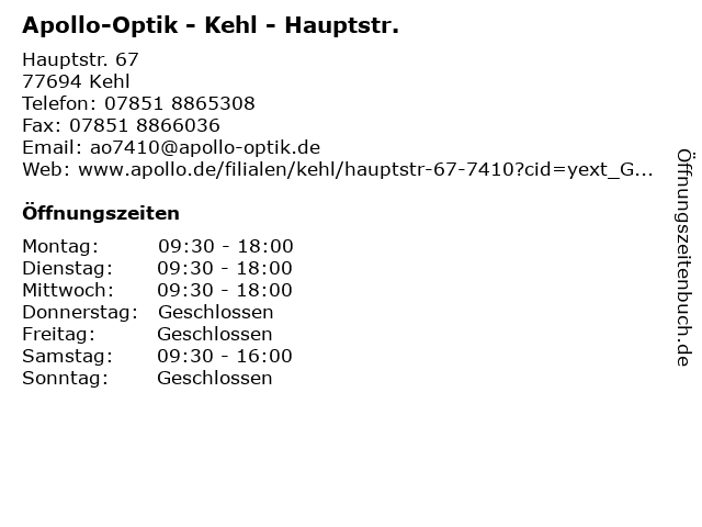 Öffnungszeiten Apollo-Optik - Kehl - Hauptstr.