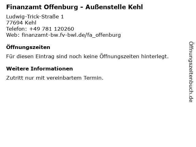 Branchen & Suchbegriffe zu Finanzamt Offenburg - Außenstelle Kehl:außenstelle, finanzamt, kehl |