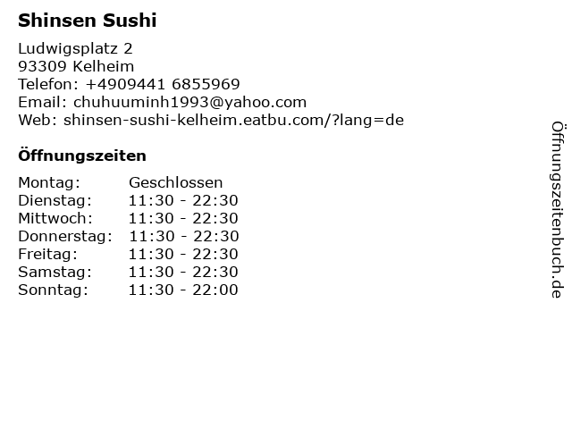 | Öffnungszeiten Shinsen Sushi in Kelheim anzeigen | |