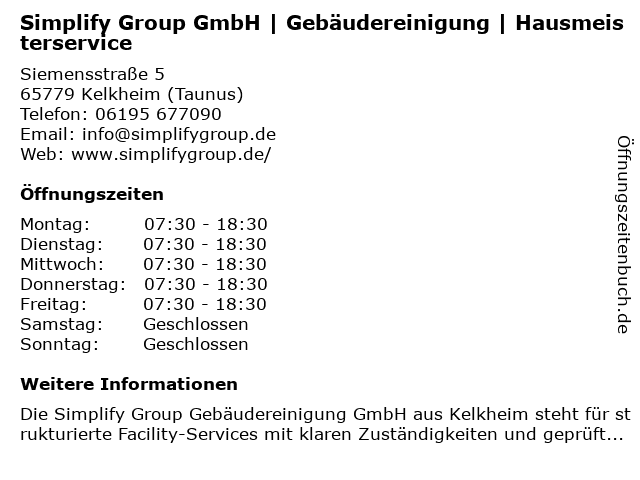 Branchen & Suchbegriffe zu Simplify Group GmbH | Gebäudereinigung | Hausmeisterservice:gebäudereinigung, group, hausmeisterservice, simplify |
