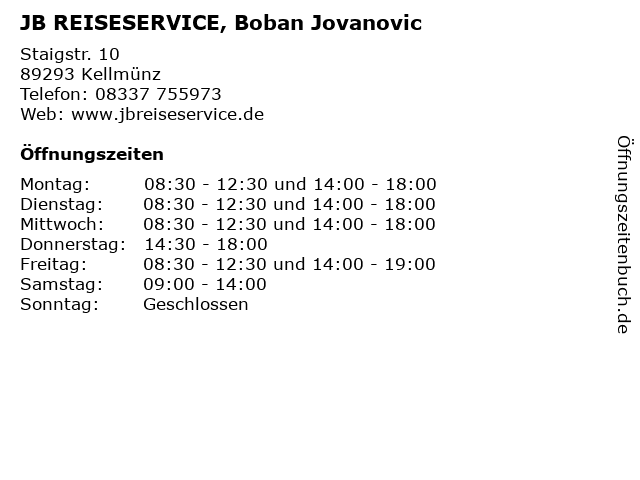 Branchen & Suchbegriffe zu JB REISESERVICE, Boban Jovanovic:boban, jb, jovanovic, reisebüros, reiseservice |