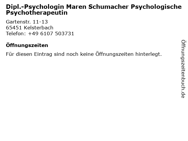 | Dipl.-Psychologin Maren Schumacher Psychologische Psychotherapeutin anrufen | |