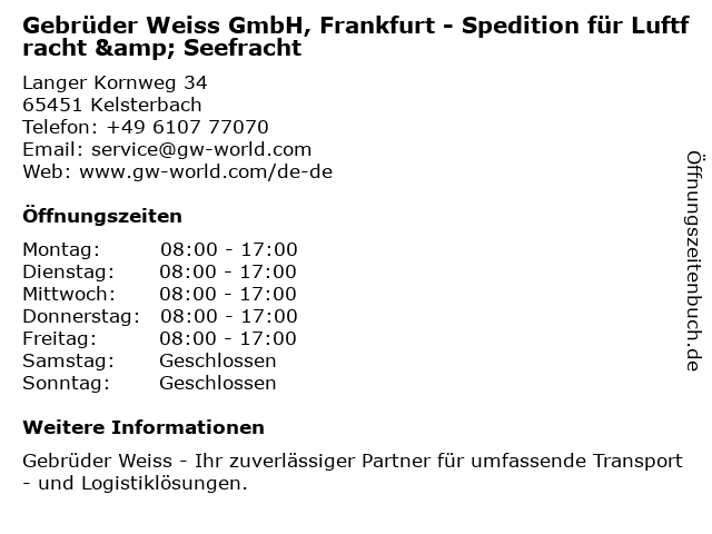 Branchen & Suchbegriffe zu Gebrüder Weiss GmbH, Frankfurt - Spedition für Luftfracht & Seefracht:gebrüder, landverkehr, lkw-transport, logistik, luftfracht, seefracht, spedition, transport, weiss, zoll, zollabfertigung |
