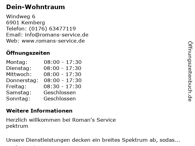 | Öffnungszeiten Dein-Wohntraum in Kemberg anzeigen | |