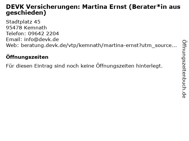 | DEVK Versicherungen: Martina Ernst (Berater*in ausgeschieden) anrufen | |