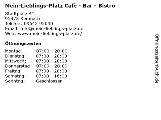 1 Reisecenter Märkl GmbH + Cafe Mein-Lieblings-Platz (Entfernung: 0,01 km) Stadtplatz 41, 95478 Kemnath 6 |