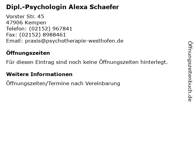| Dipl.-Psychologin Alexa Schaefer anrufen | |