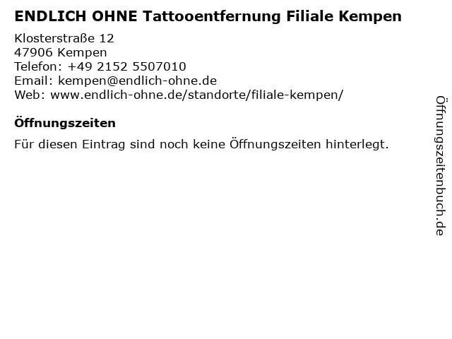 | ENDLICH OHNE Tattooentfernung Filiale Kempen anrufen | |