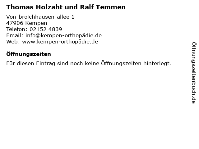| Öffnungszeiten Thomas Holzaht und Ralf Temmen in Kempen anzeigen | |