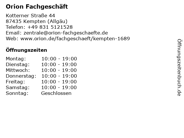 Orion Fachgeschäft in Kempten (Allgäu) | Telefonnummer, Öffnungszeiten und Adresse