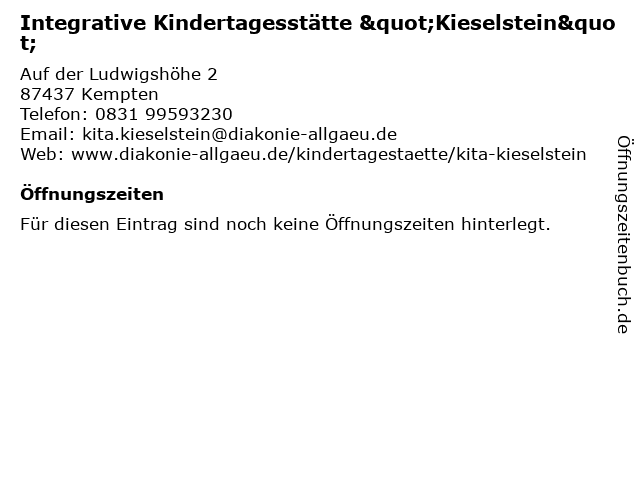 | Integrative Kindertagesstätte "Kieselstein" anrufen | |