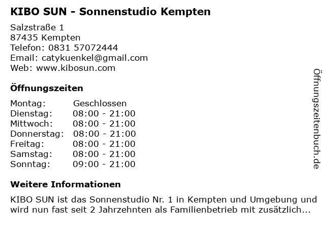Branchen & Suchbegriffe zu KIBO SUN - Sonnenstudio Kempten:kibo, sonnenstudio, sun |
