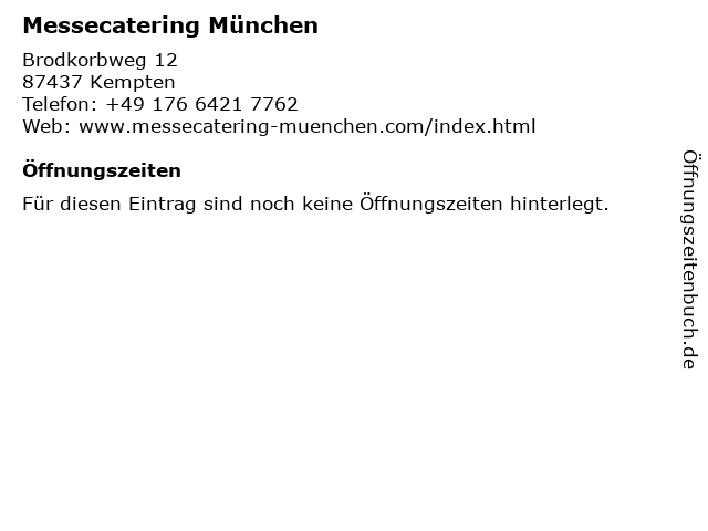 | Öffnungszeiten Messecatering München in Kempten anzeigen | |