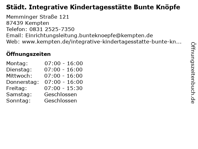 Branchen & Suchbegriffe zu Städt. Integrative Kindertagesstätte Bunte Knöpfe:bunte, familienzentrum, integrative, kinderbetreuung, kindergarten, kindertagesstätte, kita, knöpfe, städt. |