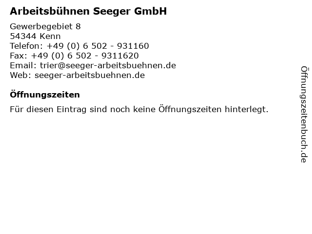 | Öffnungszeiten Arbeitsbühnen Seeger GmbH in Kenn anzeigen | |