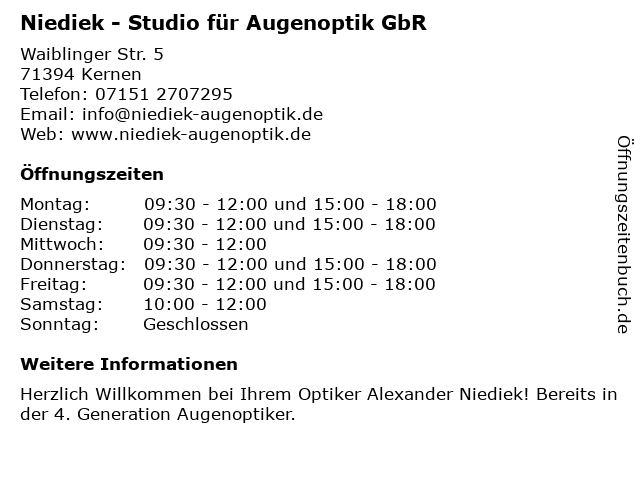 Branchen & Suchbegriffe zu Niediek - Studio für Augenoptik GbR:augenoptik, gbr, niediek, studio |