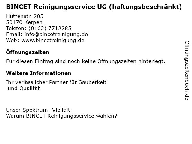 | BINCET Reinigungsservice UG (haftungsbeschränkt) anrufen | |