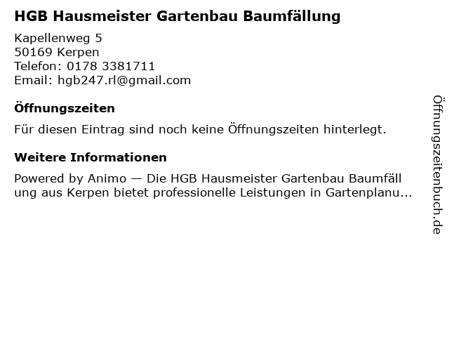 | HGB Hausmeister Gartenbau Baumfällung anrufen | |