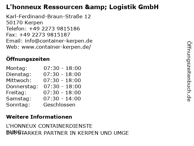 Branchen & Suchbegriffe zu L'honneux Ressourcen & Logistik GmbH:abfallverwertung, abfälle, baustoffe, containerdienst, l'honneux, logistik, ressourcen, schrott-metallhandel |