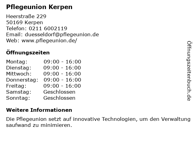 | Öffnungszeiten Pflegeunion Kerpen in Kerpen anzeigen | |
