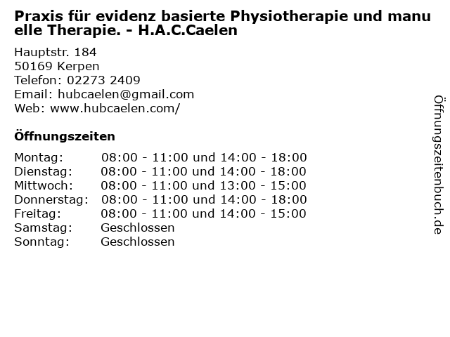 Branchen & Suchbegriffe zu Praxis für evidenz basierte Physiotherapie und manuelle Therapie. - H.A.C.Caelen:basierte, caelen, evidenz, h.a.c.caelen, hubertus, krankengymnasten, krankengymnastik, manuelle, physiotherapie, praxis, therapie. |