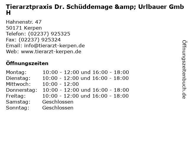 Branchen & Suchbegriffe zu Tierarztpraxis Dr. Schüddemage & Urlbauer GmbH:dr., kastrationen, röntgen von tieren, schüddemage, tierarztpraxis, urlbauer |