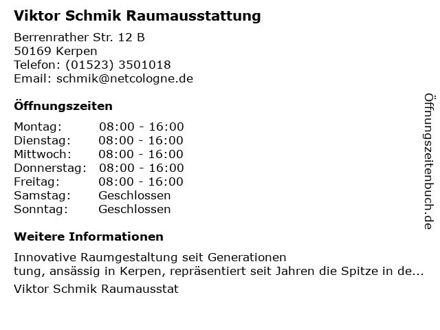 | Samstag | Geschlossen |