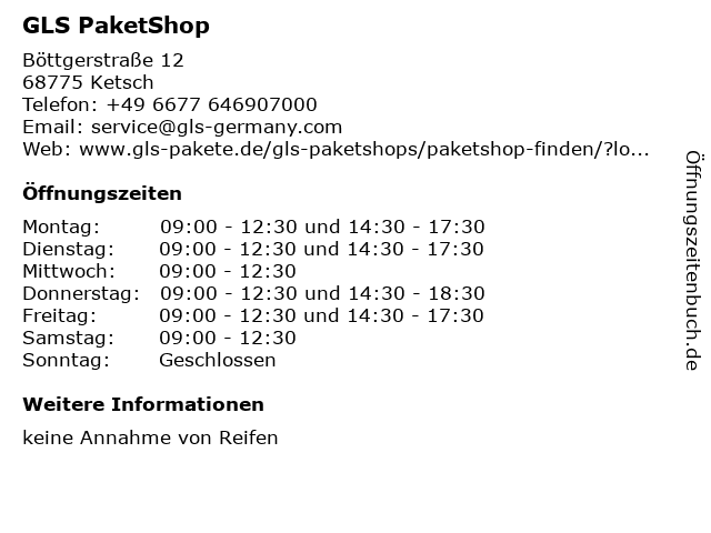 GLS PaketShop in Ketsch: Telefonnummer, Öffnungszeiten und Adresse