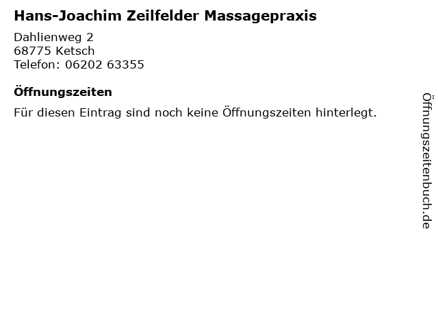 | Hans-Joachim Zeilfelder Massagepraxis anrufen | |