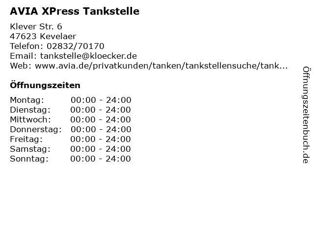 | Öffnungszeiten AVIA XPress Tankstelle in Kevelaer anzeigen | |