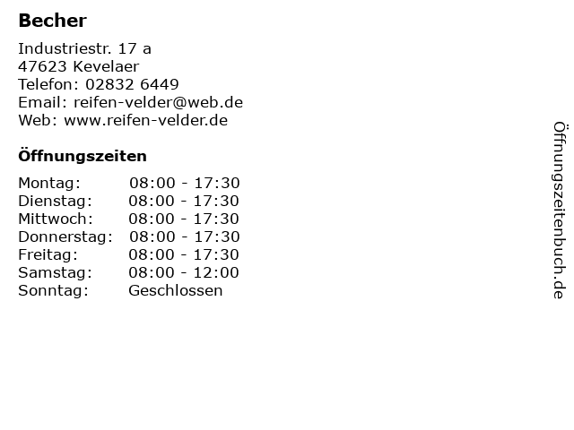 | Öffnungszeiten Becher in Kevelaer anzeigen | |