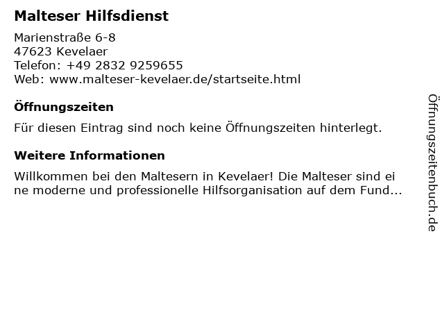 | Öffnungszeiten Malteser Hilfsdienst in Kevelaer anzeigen | |