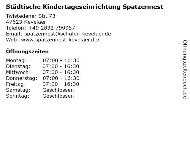 1 Integrative Kindertageseinrichtung Sternschnuppe (Entfernung: 0,61 km) Twistedener Str. 255, 47623 Kevelaer 2 Städtische Katholische Grundschule Wetten - Sekretariat (Entfernung: 3,69 km) Hauptstr. 20, 47625 Kevelaer 3 Städtische Tageseinrichtung für Kinder Drachenhöhle (Entfernung: 8,70 km) Uhlandstr. 28 B, 47608 Geldern 5 Caritas-Kindertagesstätte St. Michael Heilpädagogische Kindertageseinrichtung (Entfernung: 9,47 km) Stauffenbergstr. 47, 47608 Geldern 6 Integrative Kindertageseinrichtung Arche Noah (Entfernung: 14,01 km) Vogt-von-Belle-Platz 9, 47661 Issum |