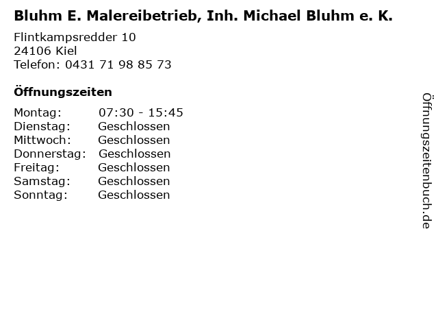 Branchen & Suchbegriffe zu Bluhm E. Malereibetrieb, Inh. Michael Bluhm e. K.:bluhm, e., ernst, inh, k., lackierer, maler, malereibetrieb, michael, tapezierer |