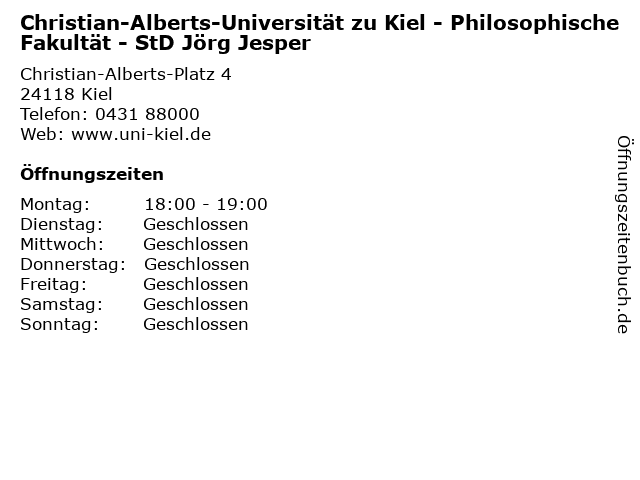 Branchen & Suchbegriffe zu Christian-Alberts-Universität zu Kiel - Philosophische Fakultät - StD Jörg Jesper:alberts, anmeldung, christian, fakultät, jesper, jörg, kiel, philosophische, sekretariat, std, universität, zu |