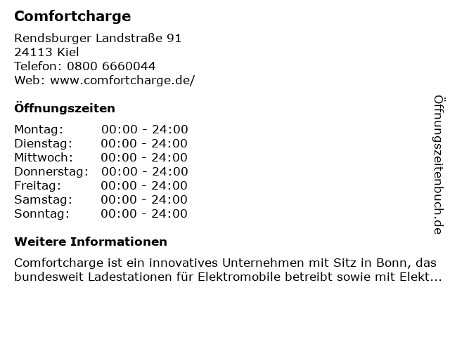 | Öffnungszeiten Comfortcharge in Kiel anzeigen | |