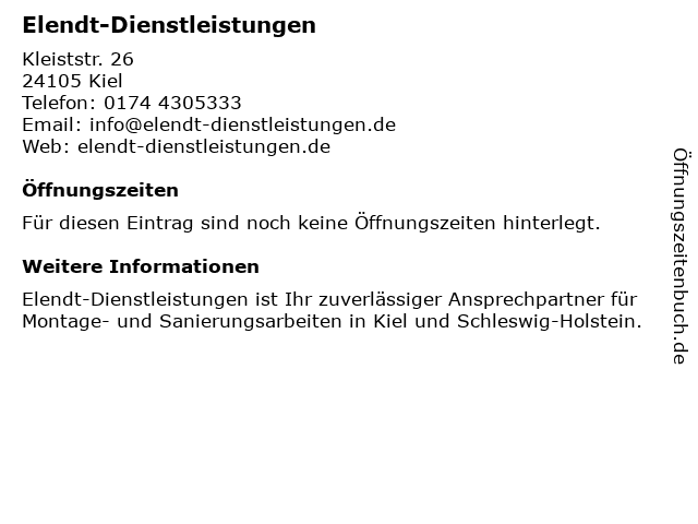 | Öffnungszeiten Elendt-Dienstleistungen in Kiel anzeigen | |