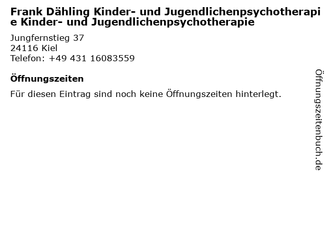 | Frank Dähling Kinder- und Jugendlichenpsychotherapie Kinder- und Jugendlichenpsychotherapie anrufen | |