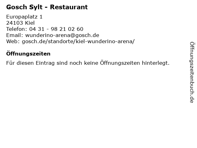 | Öffnungszeiten Gosch Sylt - Restaurant in Kiel anzeigen | |