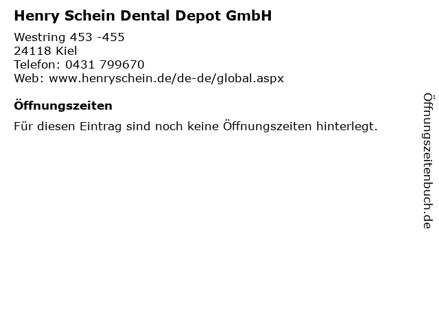 | Öffnungszeiten Henry Schein Dental Depot GmbH in Kiel anzeigen | |