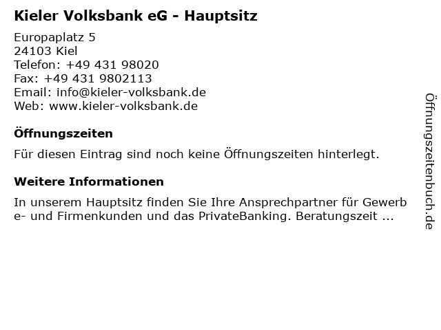 | Kieler Volksbank eG - Hauptsitz anrufen | |