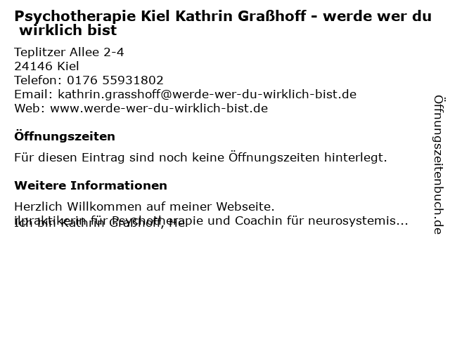| Psychotherapie Kiel Kathrin Graßhoff - werde wer du wirklich bist anrufen | |