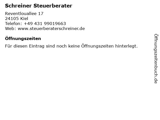 | Öffnungszeiten Schreiner Steuerberater in Kiel anzeigen | |