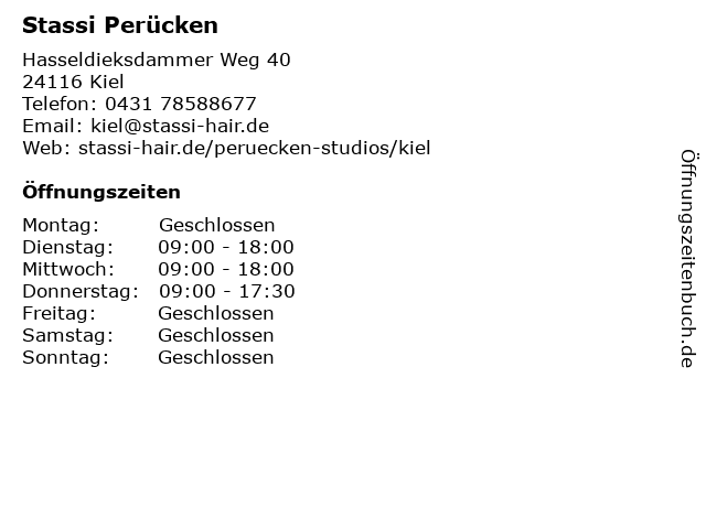 | Öffnungszeiten Stassi Perücken in Kiel anzeigen | |
