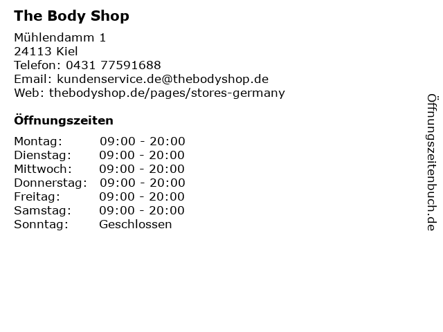 | Öffnungszeiten The Body Shop in Kiel anzeigen | |