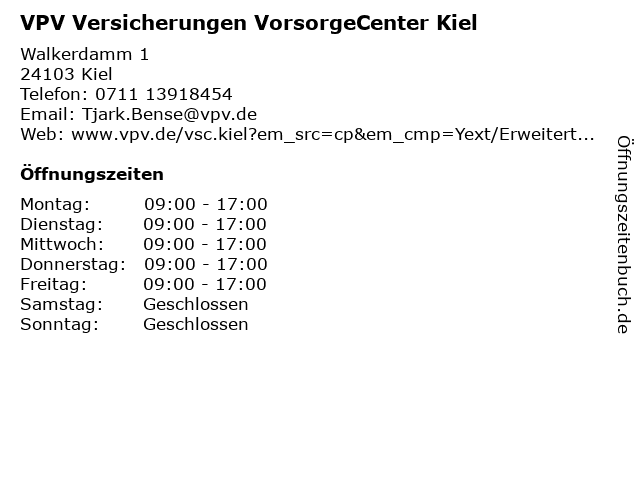 Öffnungszeiten VPV Versicherungen VorsorgeCenter Kiel