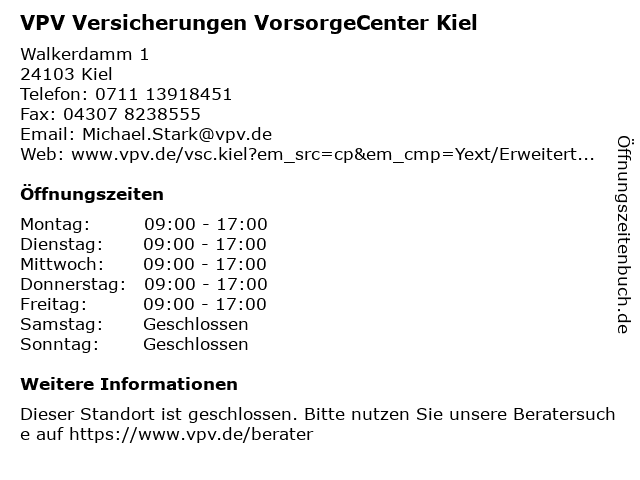 | Branchen & Suchbegriffe zu VPV Versicherungen VorsorgeCenter Kiel:altersvorsorge, berufsunfähigkeitsversicherung, finanzberatung, gebäude- und hausratsversicherung, kiel, lebensversicherung, mietrechtsschutzversicherung, pflegeversicherung, versicherungen, vorsorgecenter, vpv |