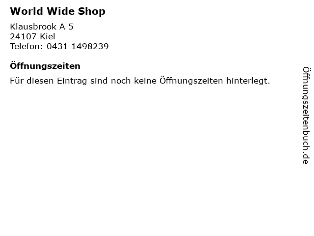 | Öffnungszeiten World Wide Shop in Kiel anzeigen | |