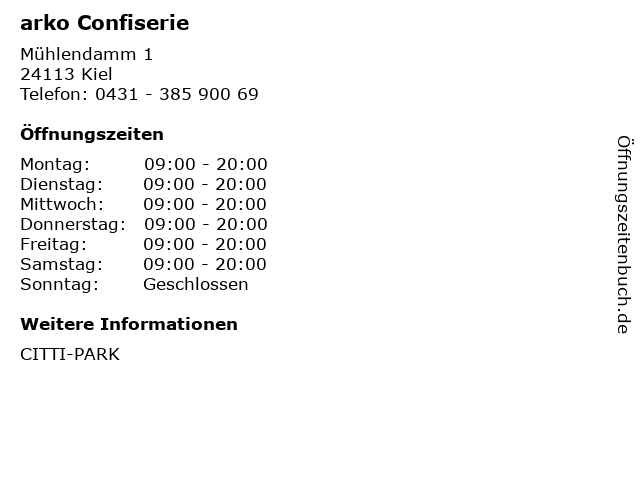 | Öffnungszeiten arko Confiserie in Kiel anzeigen | |