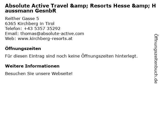 | Absolute Active Travel & Resorts Hesse & Haussmann GesnbR anrufen | |